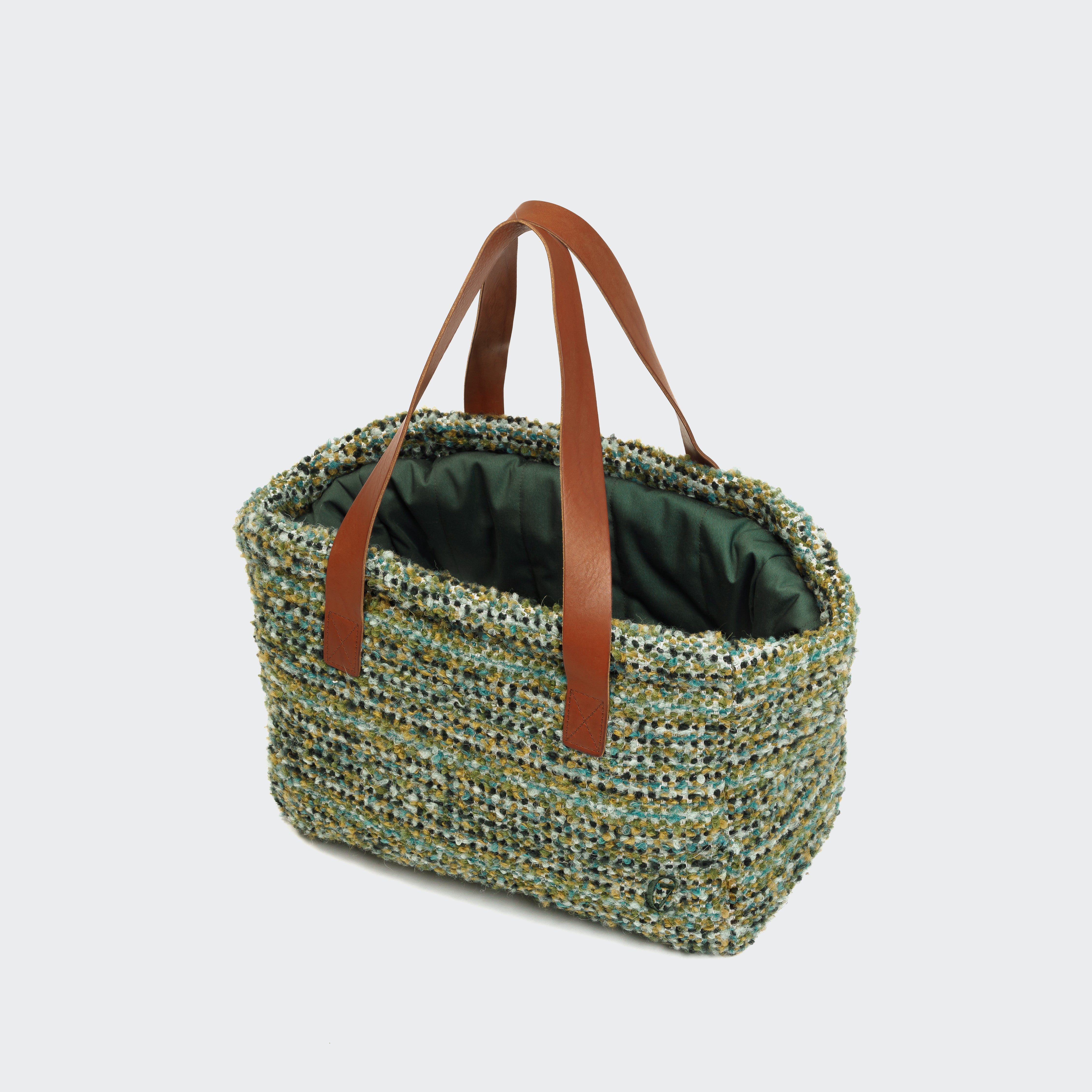 Luxury carrier bag with high-quality leather handle in a new open shape in green. It offers a particularly comfortable bed for traveling and comes with an extra reversible insert in wool and twill to reinforce the base. The Verona dog carrier is ideal for traveling, even as a normal bag.