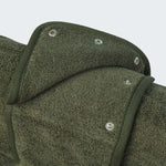 Die weiche, kräftige Frottee-Struktur aus 100 % Bio-Baumwolle saugt zuverlässig Nässe auf und fühlt sich auf der Haut gleichzeitig angenehm samtig an. Das CLOUD7 Chenille-Logo fügt sich in den Frottee-Look des Bademantels ein.
