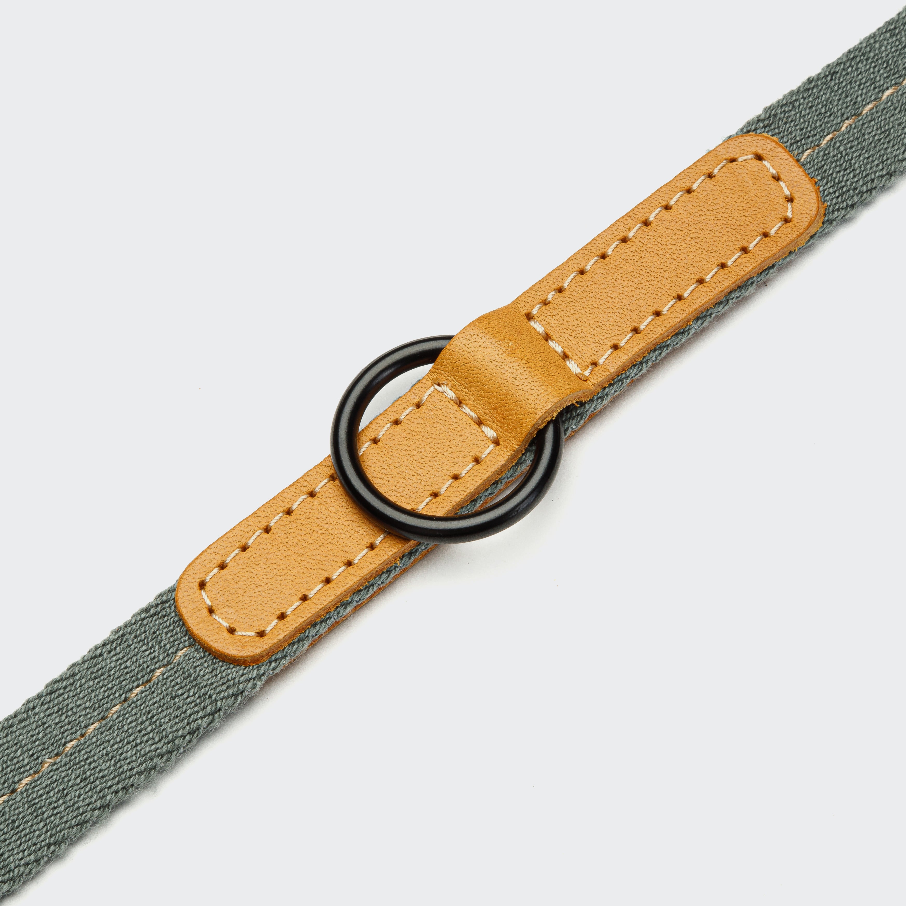 Verstellbare XL Hundeleine (max. 2,20 m), Hellbraun/Grau aus besonders robustem Gurtband und Leder mit schwarzer Hardware.