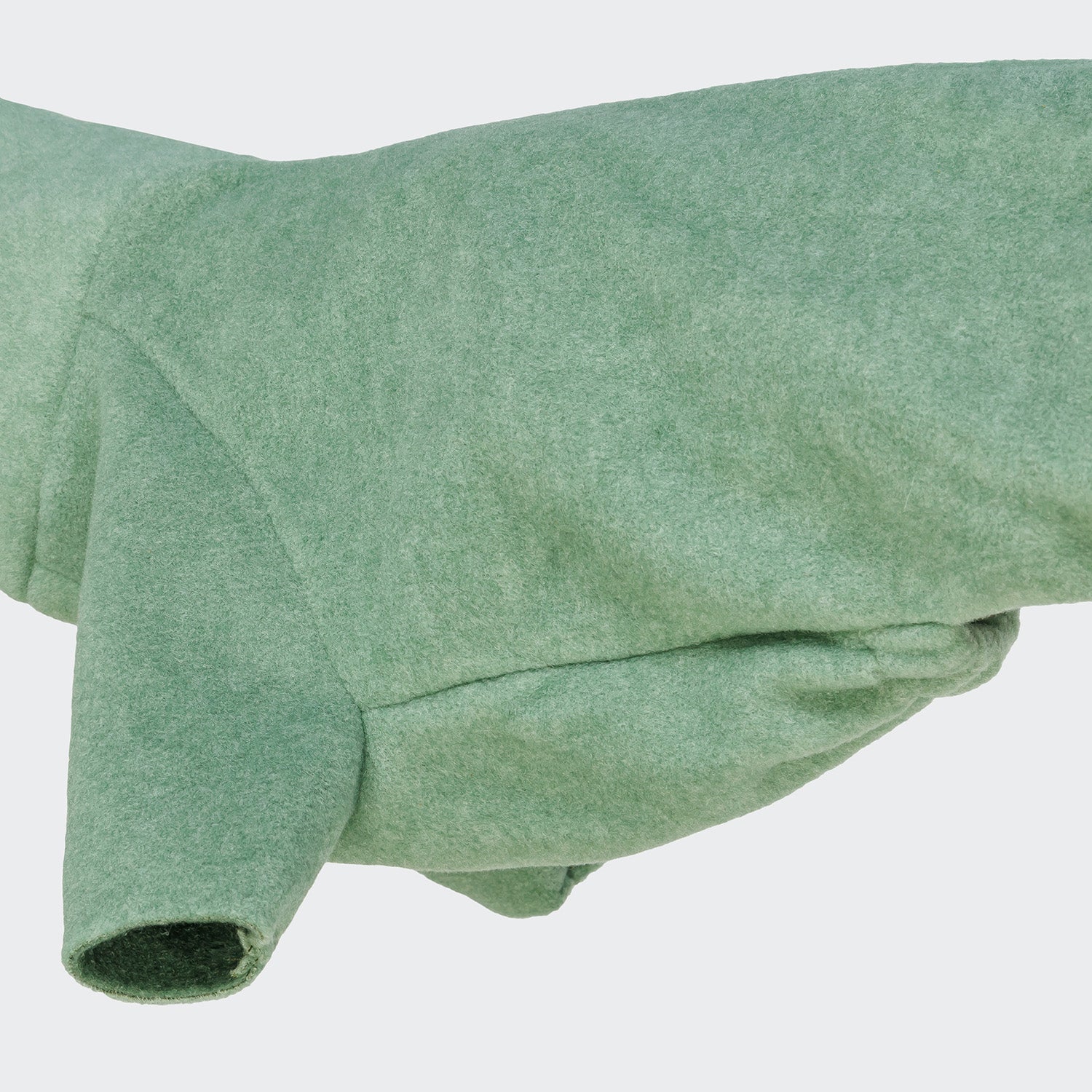Warmer Fleecepullover für Dackel in Dusty Green, der auch die Beine bedeckt. Der unkomplizierte, kuschelige Pulli mit Bauchschutz ist für Kaninchendackel, Zwergdackel und Standarddackel erhältlich.