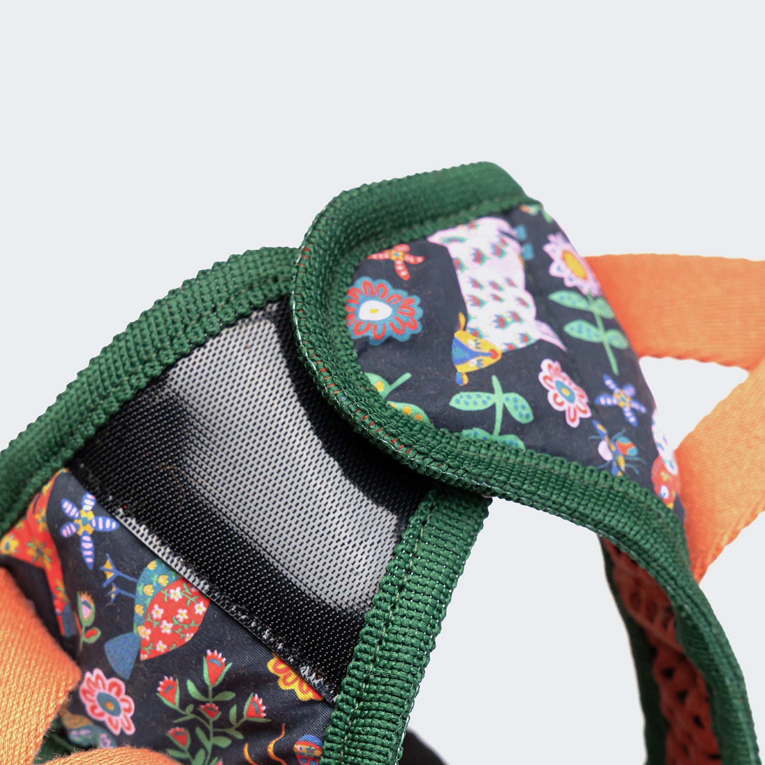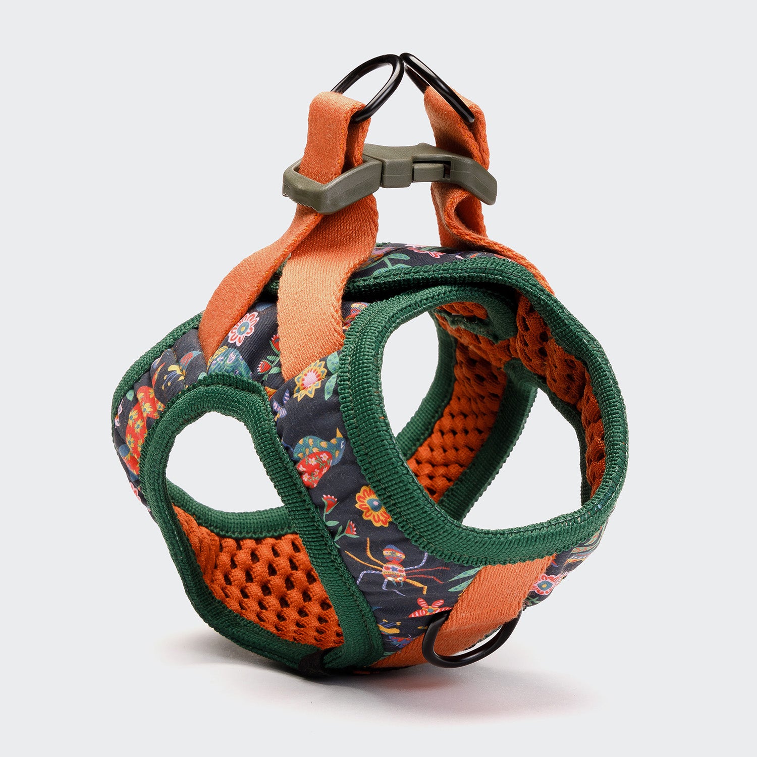 Das Holly Park Step-In Geschirr wurde speziell für kleine Hunderassen entwickelt und vereint Funktionalität mit ästhetischem Design. Es besteht aus einem leichten und weichen Materialmix mit einem original Liberty-Design und einem knallig orangefarbenen, atmungsaktiven Innenfutter. Dank des Step-In-Designs ist das Geschirr einfach anzulegen und sitzt bequem am Hundekörper. Die gekreuzten Bänder sorgen für eine gleichmäßige Druckverteilung, während zusätzliche D-Ringe verschiedene Leinenpositionen ermöglichen. Mit Details wie einem elastischen Einfassband für Bewegungsfreiheit und einem technischen Klettverschluss bietet das Geschirr durchdachte Features für jeden Einsatz. Erhältlich in Größen von 3XS bis XL, eignet es sich für Hunde von 1,5 bis 15 kg.